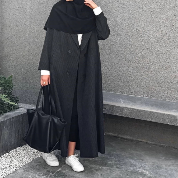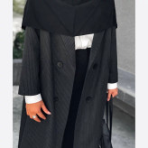 مانتو بلند دانشجویی اداری دیپلمات مشکی نوک مدادی سرمه ای مدل آندیا