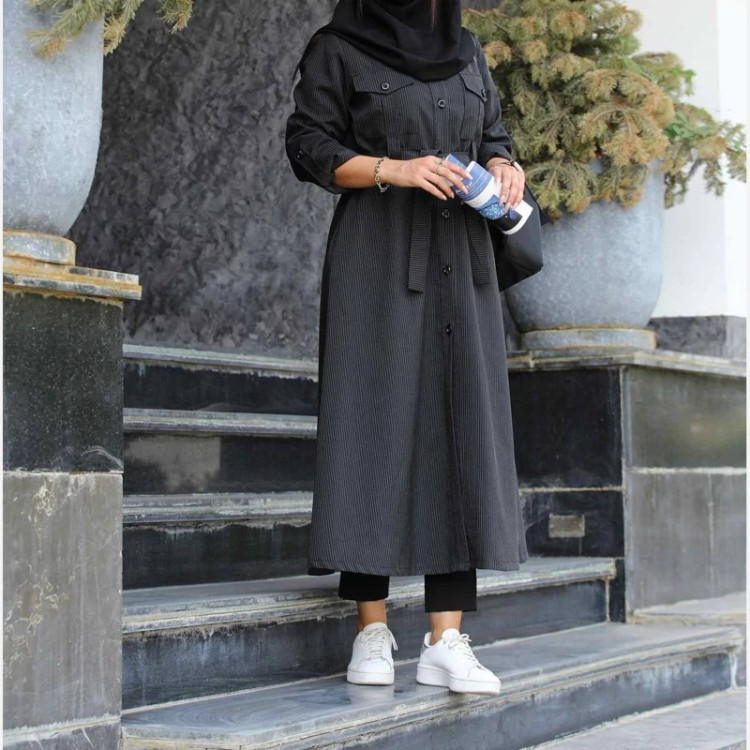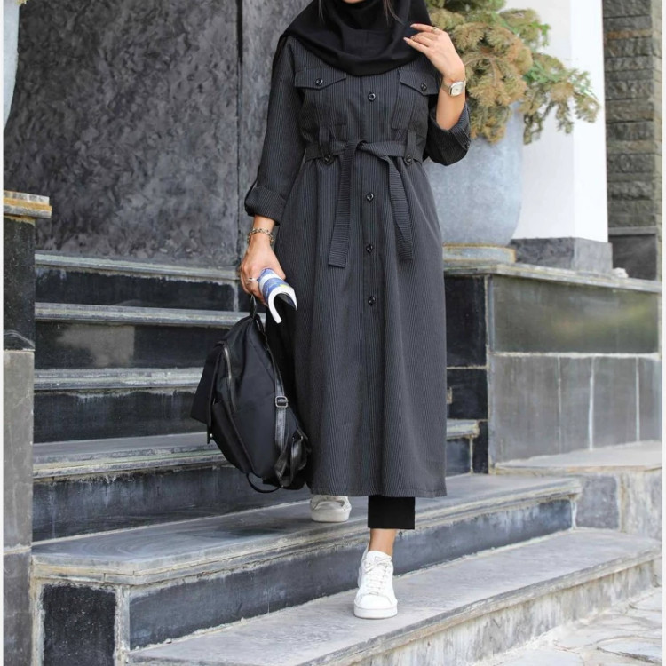 #دانشجویی از نوع مانتو ، با قیمت عالی ❤ 🌹مانتو دیپلمات - ترکیبی 🌹جلوی کار با دکمه بسته میشه 🌹مچ آستین ساده قابل تنظیم 🌹جیب کاربردی جنس : دیپلمات راه راه 🌹 3رنگ: مشکی_ طوسی روشن- سرمهای قد: 120 قد آستین60 دور سینه سایز یک(106) دور سینه سایز دو(110) دو سایز: سایز 1 مناسب 40/38 سایز 2 مناسب 42/46