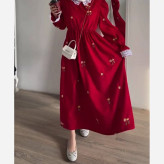 پیراهن یلدایی بلند زنانه جنس مخمل موهر فری سایز 38 تا 48