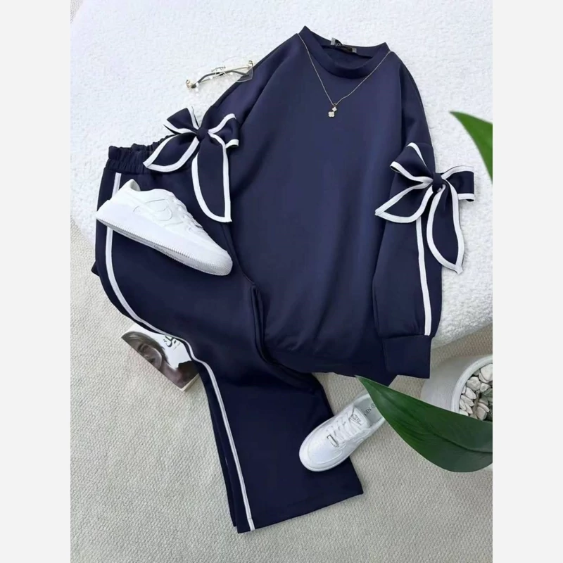 ست دورس و شلوار پاپیونی دخترانه و زنانه جنس داخل کرکی فری سایز