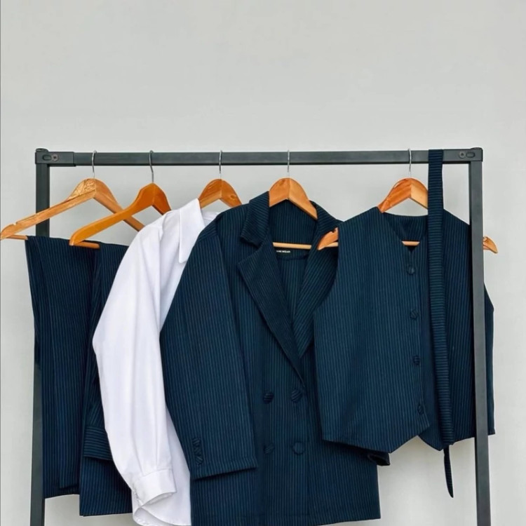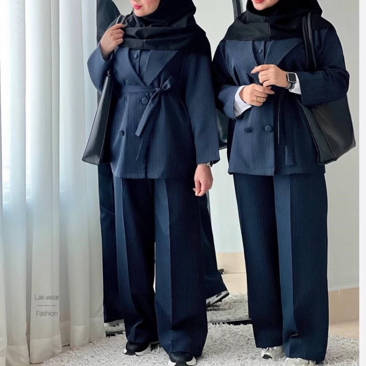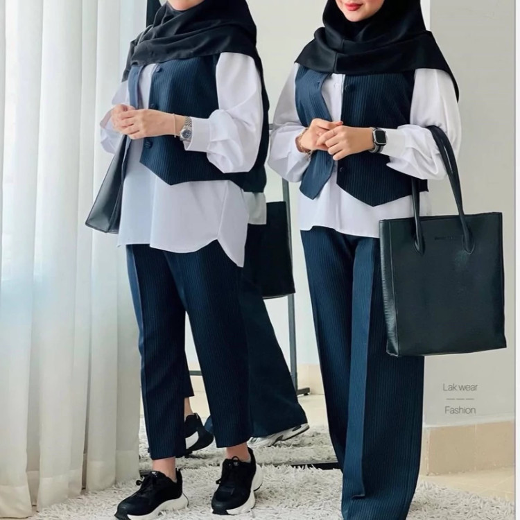 مانتو سه تیکه با ژیله و شلوار زنانه اداری و دانشجویی رنگ سرمه ای مشکی سایز 38 تا 46 جنس دیپلمات