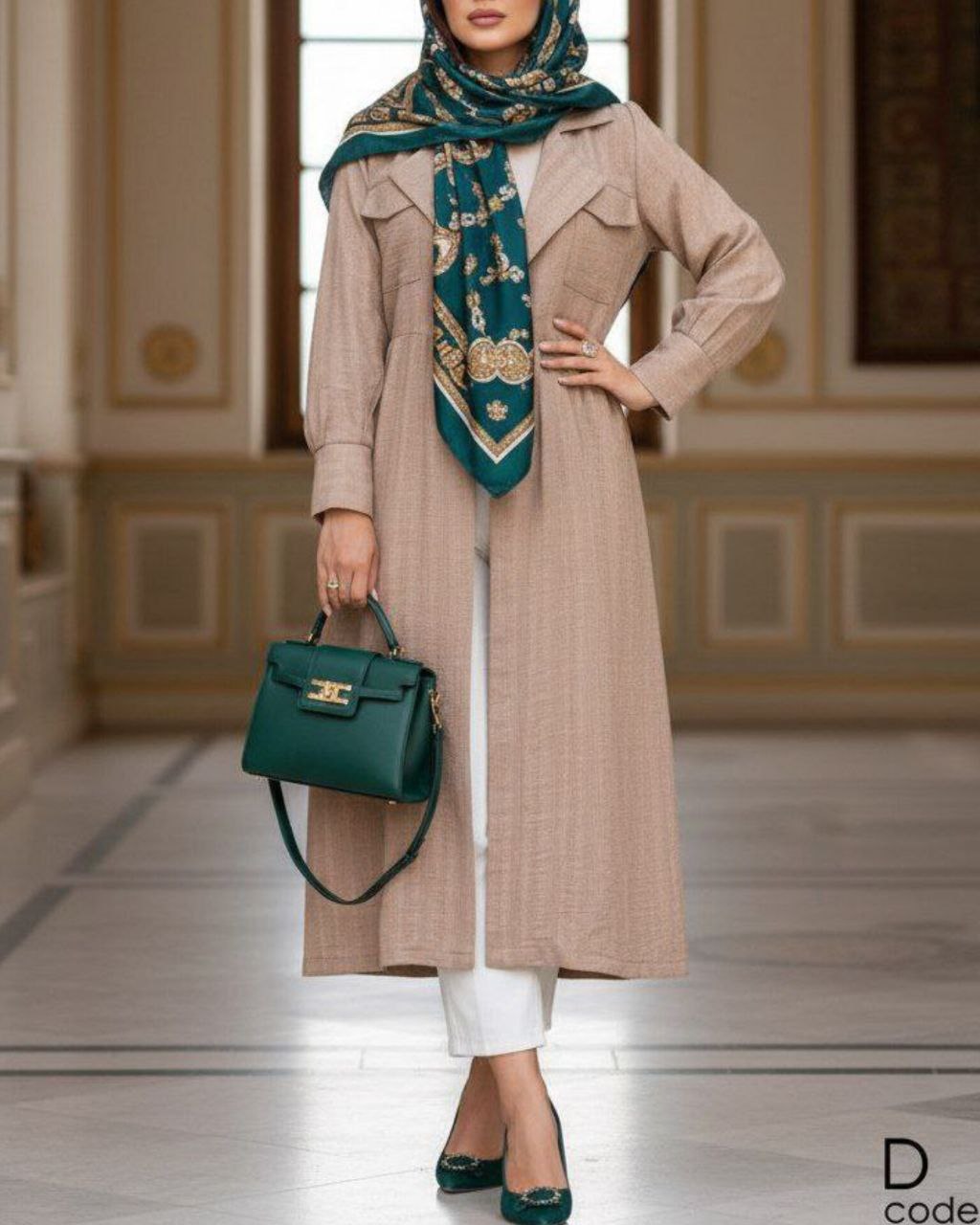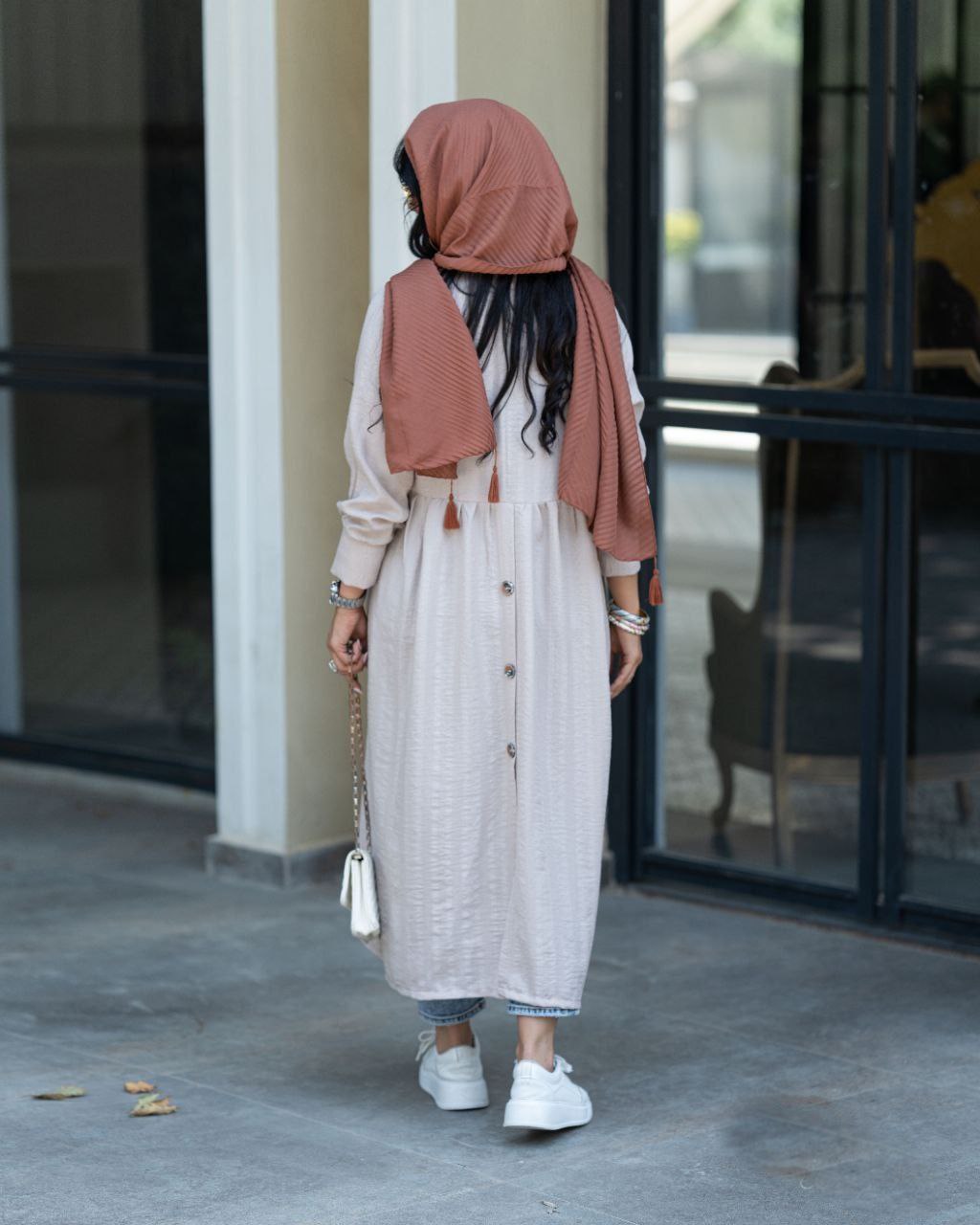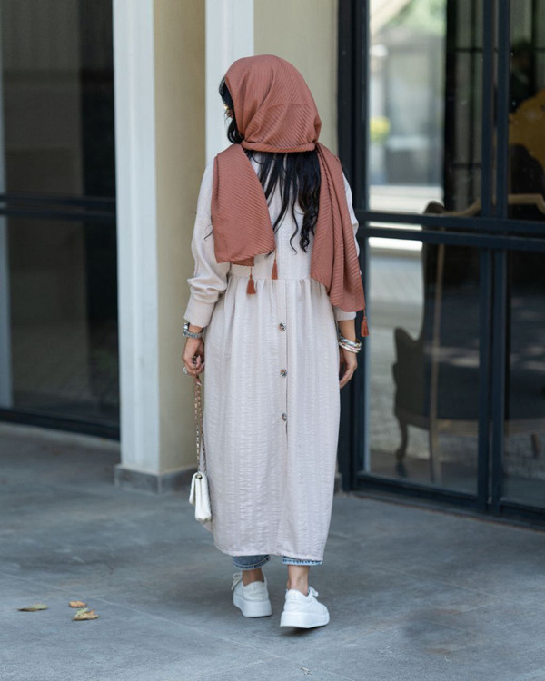 مانتو بلند زنانه جنس لنین شانتون کتیبه دوسایز