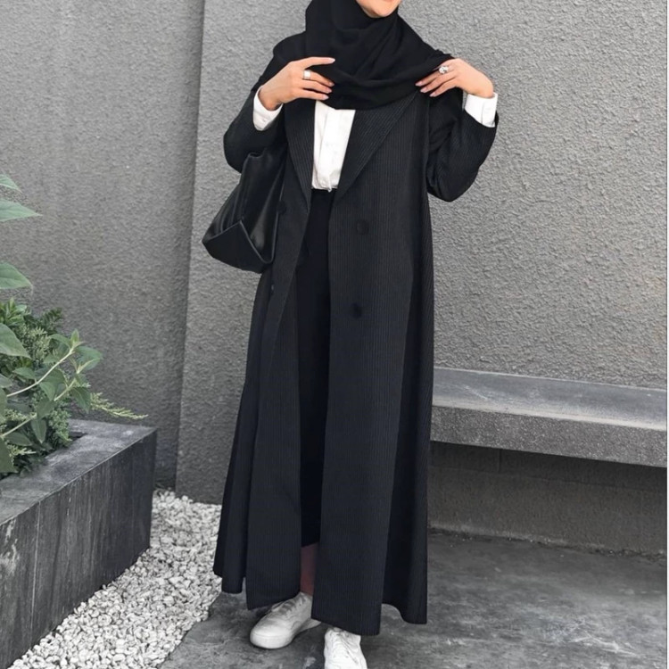 مانتو بلند دانشجویی اداری دیپلمات مشکی نوک مدادی سرمه ای مدل آندیا