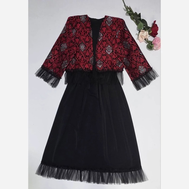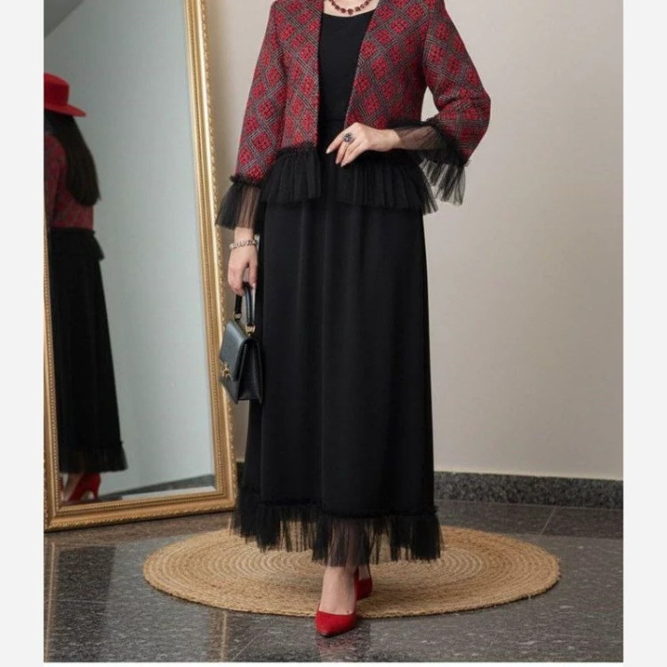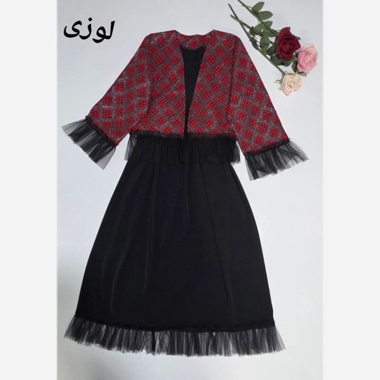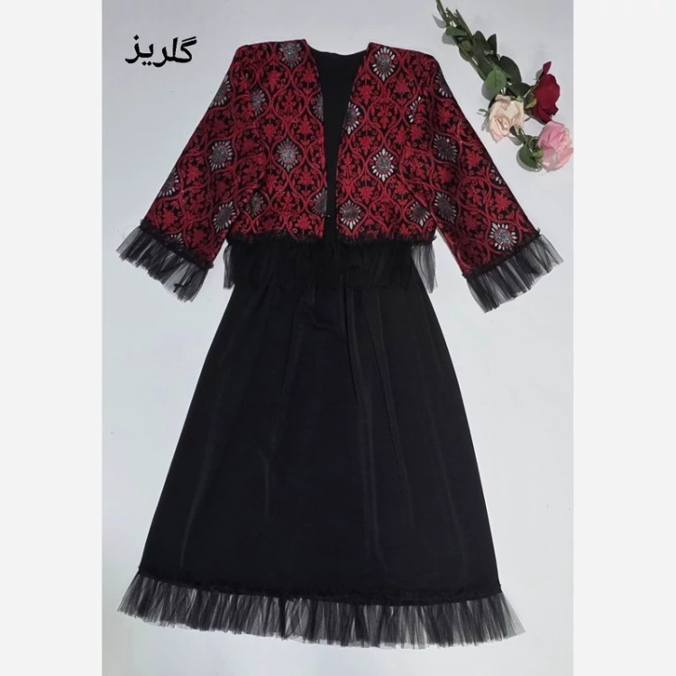 کت و دامن زنانه جنس تافته و سوزندوزی لمه دار فری سایز تا 46