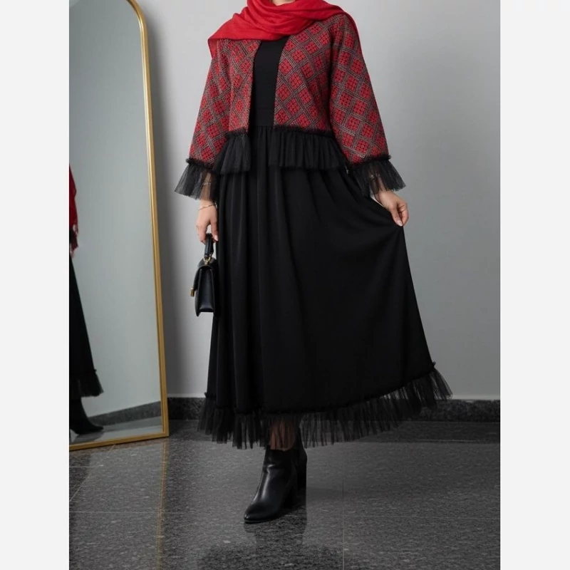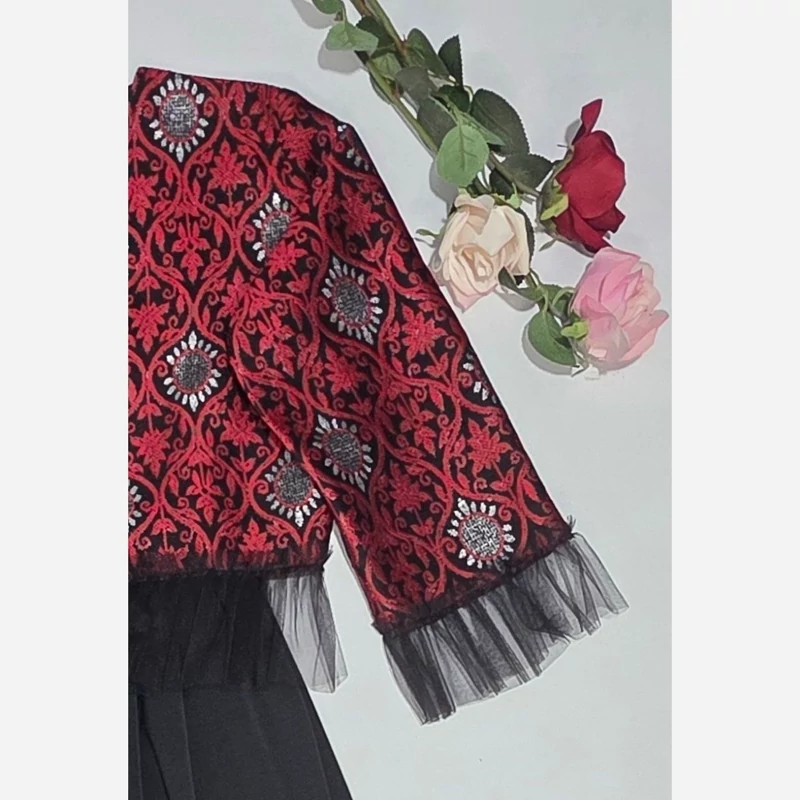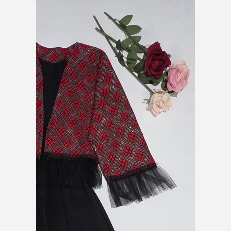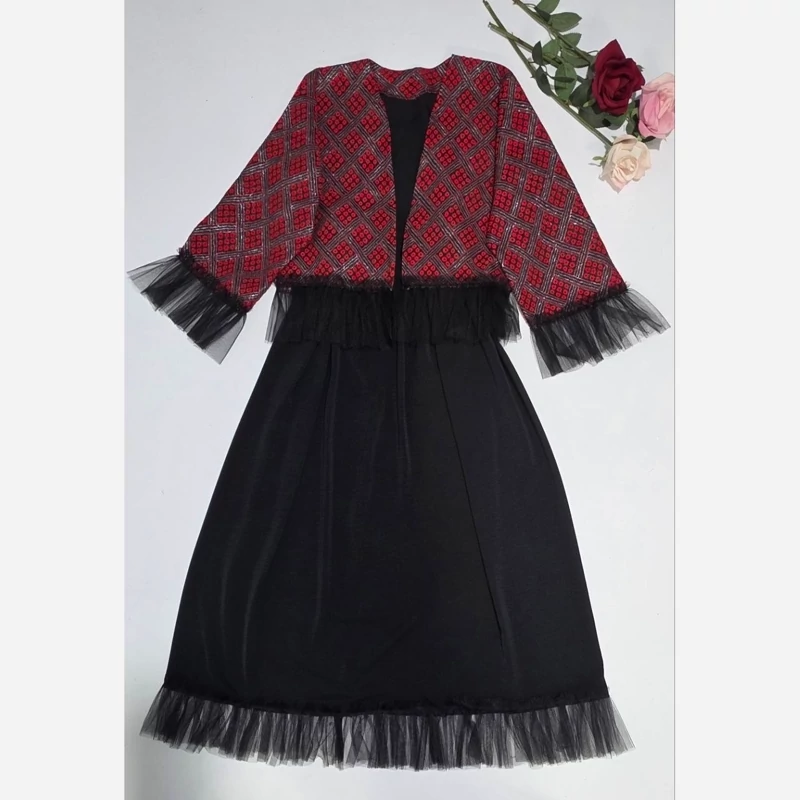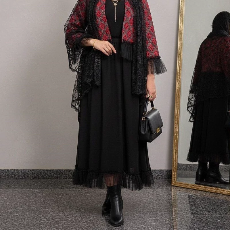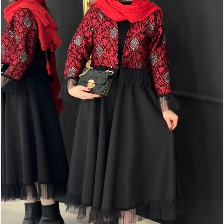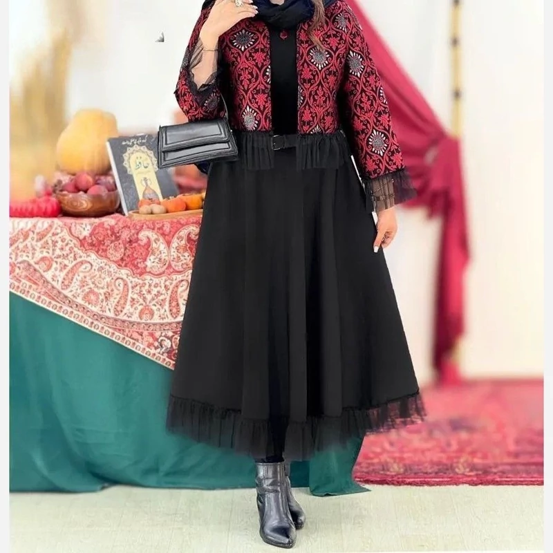 کت و دامن زنانه جنس تافته و سوزندوزی لمه دار فری سایز تا 46