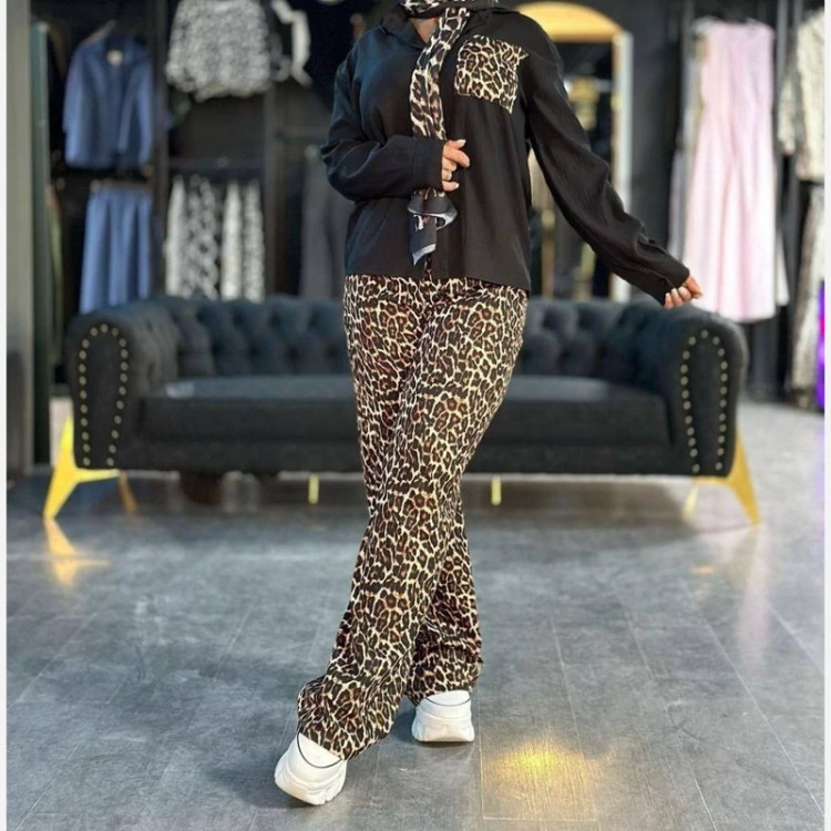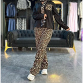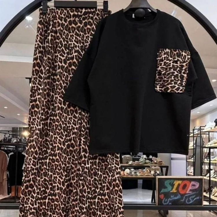 ست تیشرت و شلوار زنانه طرح پلنگی جنس کراش کش فری سایز