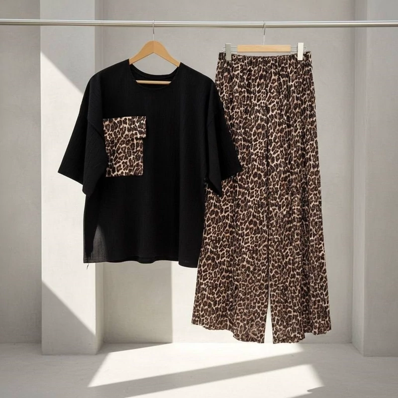 👚نام : ست تی شرت شلوار پلنگی هیفا❤️🔥