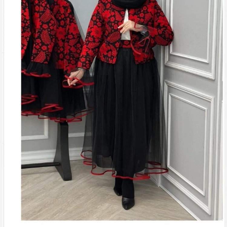 کت و دامن تور زنانه جنس تافته و تور استر دار فری سایز تا 48