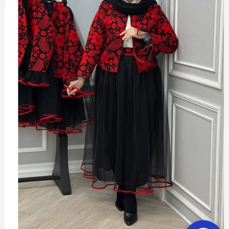 کت و دامن تور زنانه جنس تافته و تور استر دار فری سایز تا 48