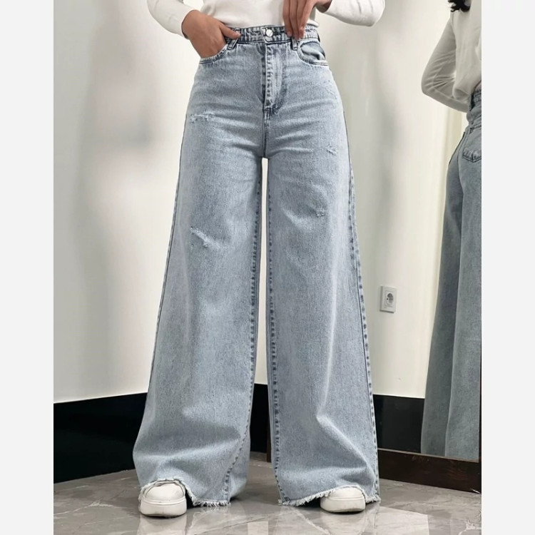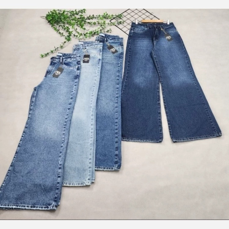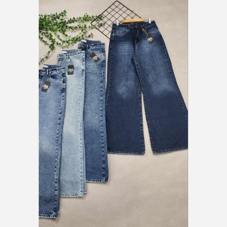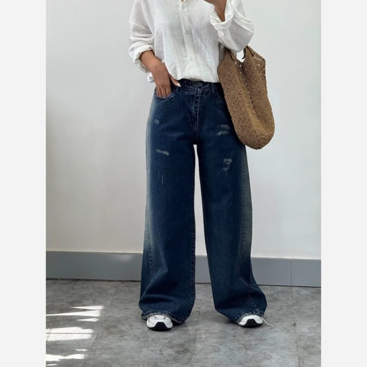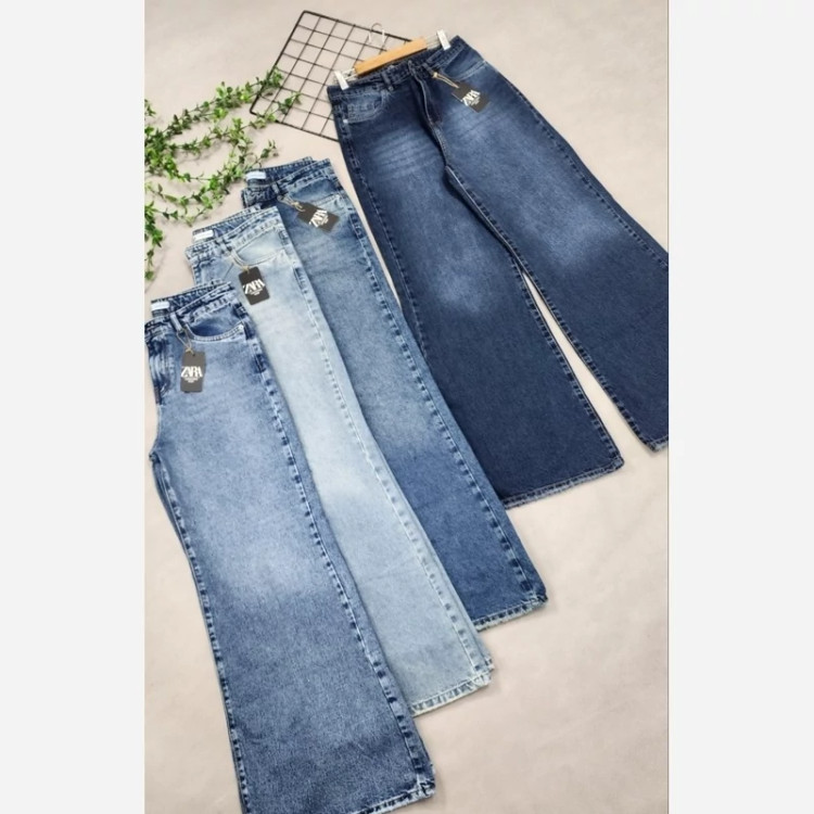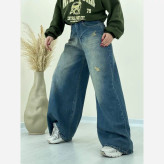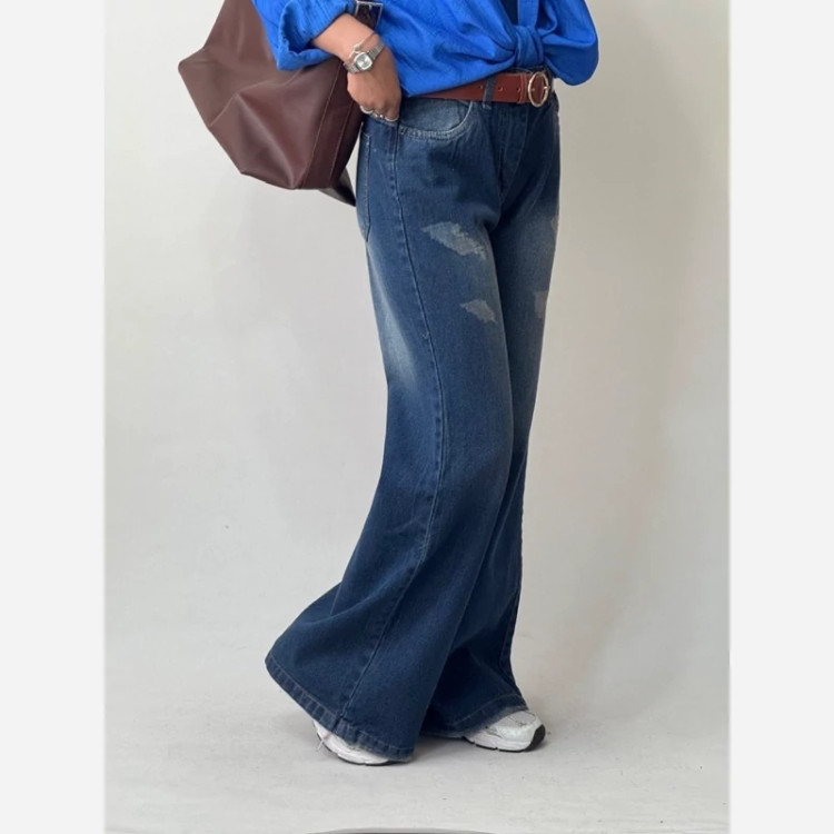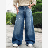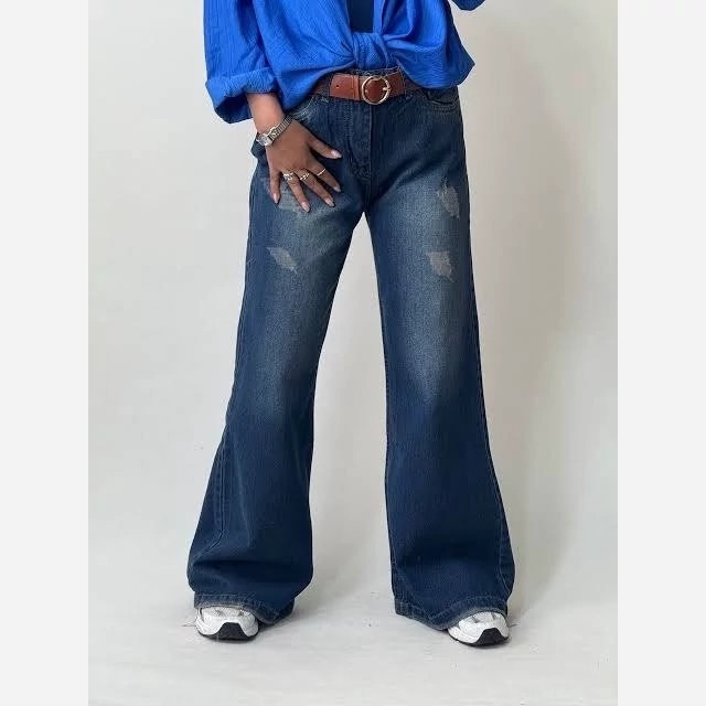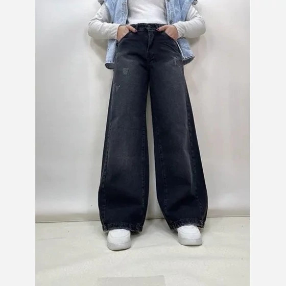 شلوار شافل بگ جین زنانه/دخترانه جنس جین اسلپ فری سایز 30 تا 34