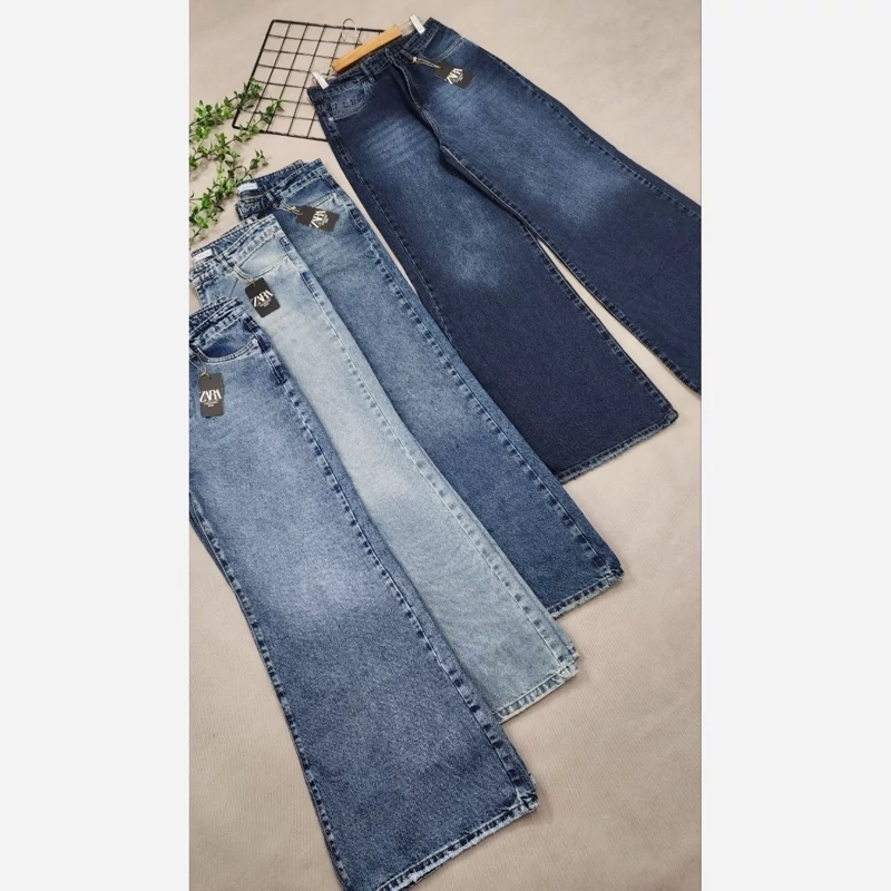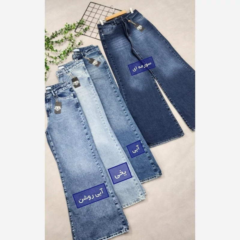 شلوار شافل بگ جین زنانه/دخترانه جنس جین اسلپ فری سایز 30 تا 34