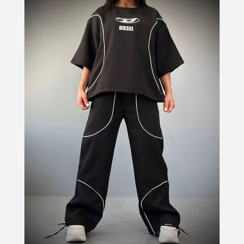 ست تیشرت و شلوار زنانه طرح پلنگی جنس کراش کش فری سایز