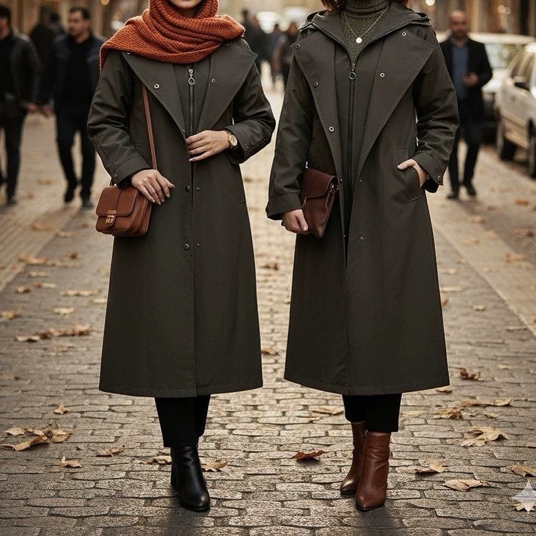 پالتو زنانه لش بلند جنس فوتر داخل استر خورده بصورت جلو باز و بسته فری سایز 38 تا 50
