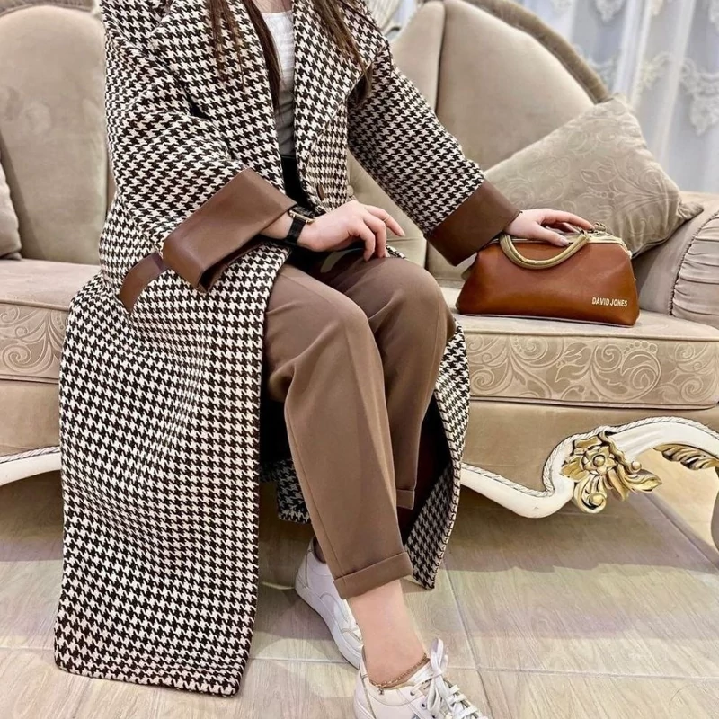 پالتو بلند زنانه جنس پیردوپل پشمی فری سایز40تا48