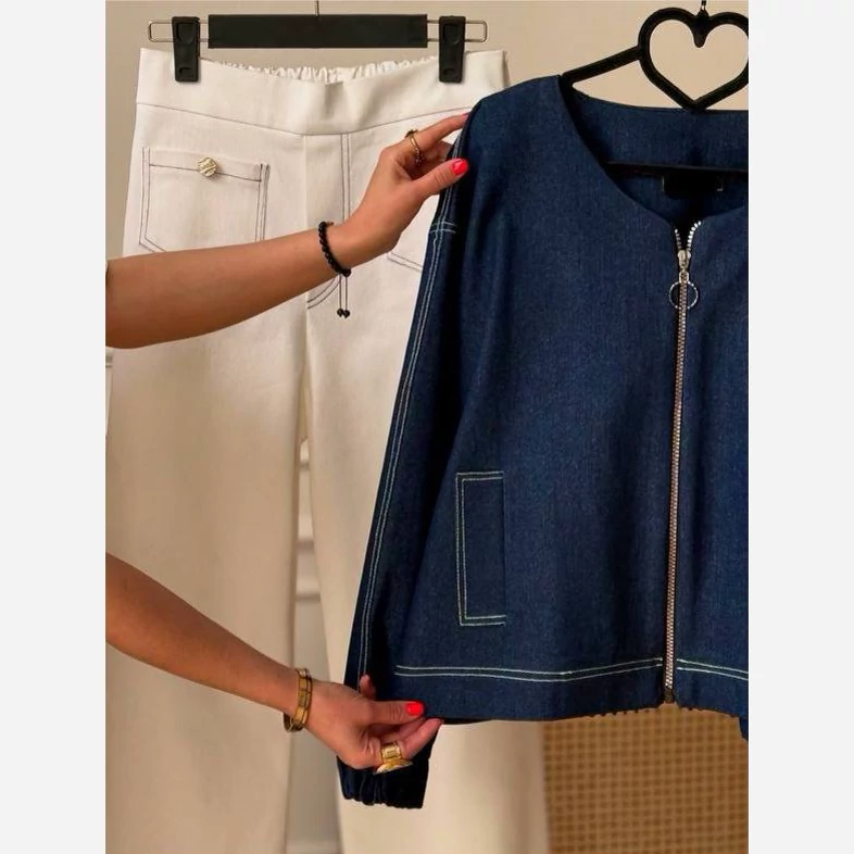 بامبر جکت کوتاه زنانه جنس جین فری سایز 36 تا 46