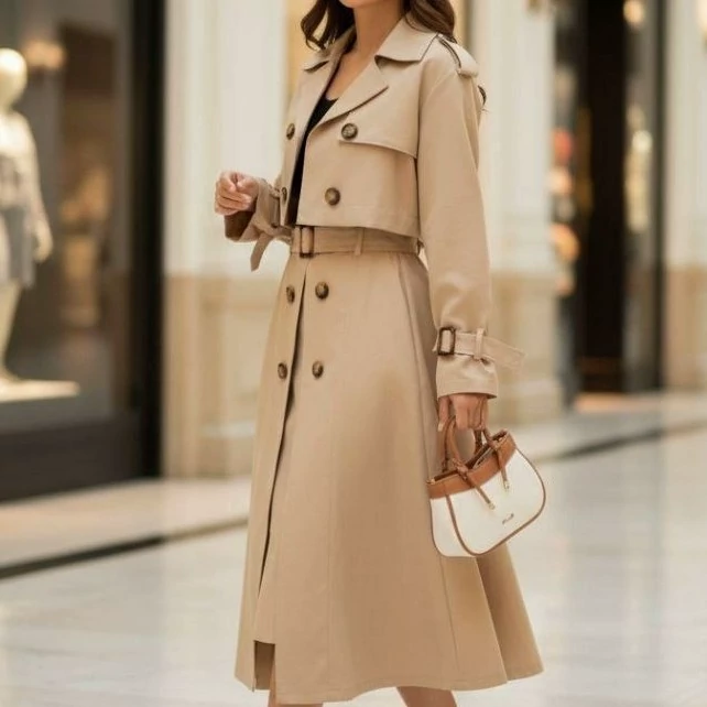 پالتو بارونی زنانه جنس کرکره ای استر ژاپنی فری سایز 38 تا 50