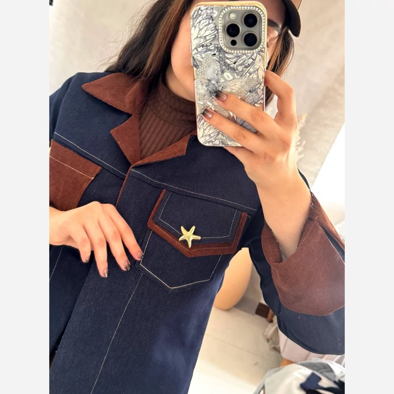کت کبریتی جین زنانه جنس جین ضخیم و مخمل کبریتی فری سایز