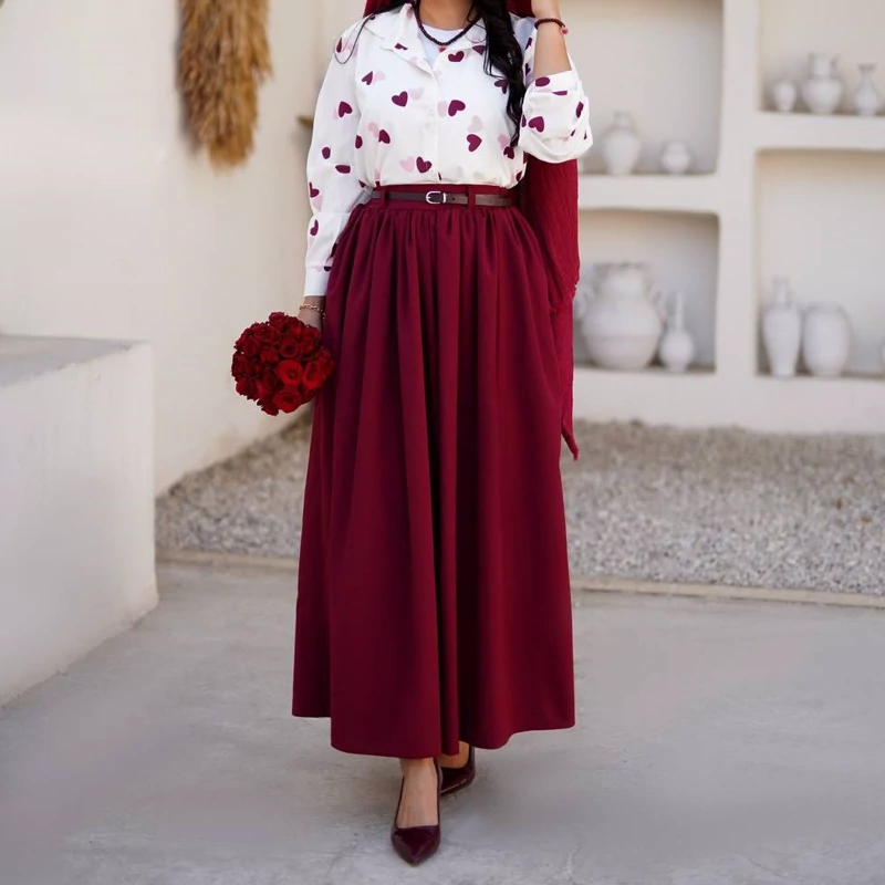 ست شومیز و دامن زنانه جنس کتان پلاس فری سایز 38 تا 50