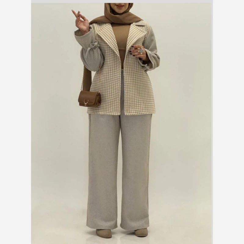 ست کت و شلوار زنانه جنس پیچازی پشمی و توییت جناقی فری سایز تا 46