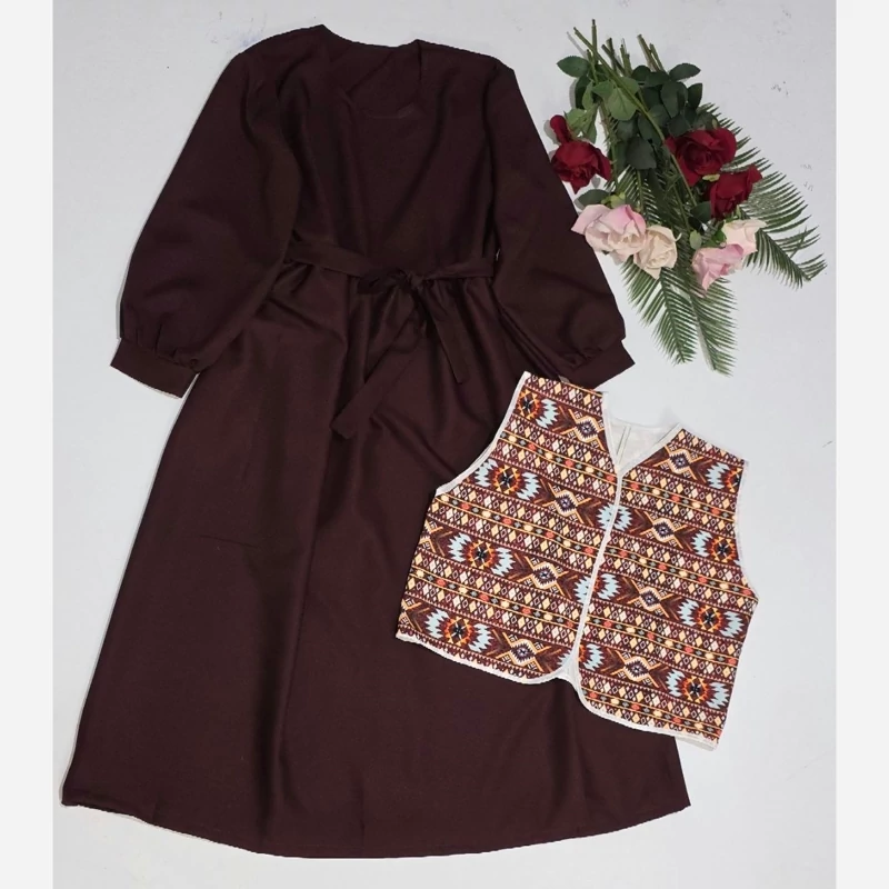 ست جلیقه پیرهن و کمربند یلدایی زنانه تافته هندی و کتان پلاس فری سایز 38 تا 48