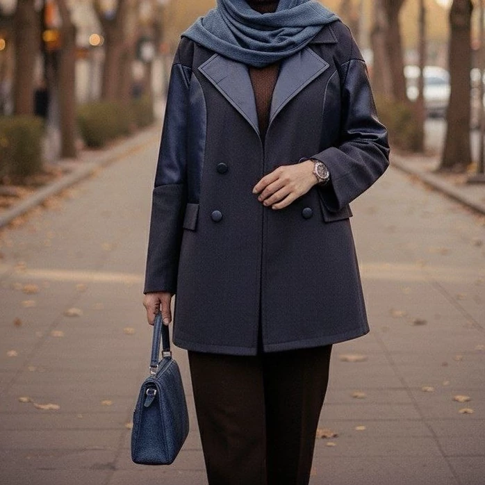 مانتو بلند دانشجویی اداری دیپلمات مشکی نوک مدادی سرمه ای مدل آندیا
