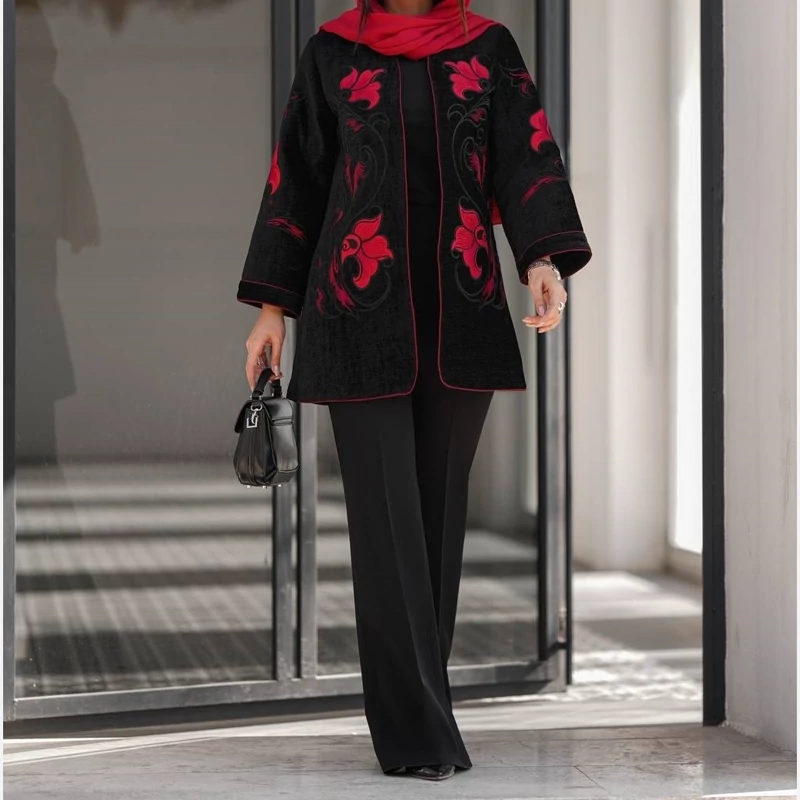مانتو گلدوزی زنانه جنس لنین فری سایز